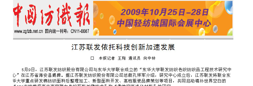 On December 27, Sin Xua Rhbao, the house organ of Jiangsu Provincial Committee of the CPC declared the candidate to get financial support for Jiangsu province “double gen plan” in 2010 to the public. Doctor Li Yulin, a high-level talent from Donghua University introduced by our company was on list, and would receive the provincial finance special funds support.